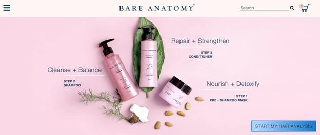 Here’s an example from Bare Anatomy. The company sells personalized shampoo products. As soon as you enter their website, you see a captivating image. And just below that, in the bottom left, notice the personalized Call to Action button.