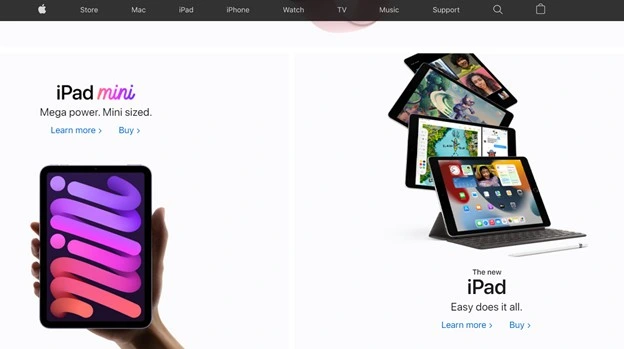 Apple sells a wide range of electronic products such as tablets, laptops, and watches. When visitors enter Apple’s website, they will see a catalog of all the electronics the company sells.
